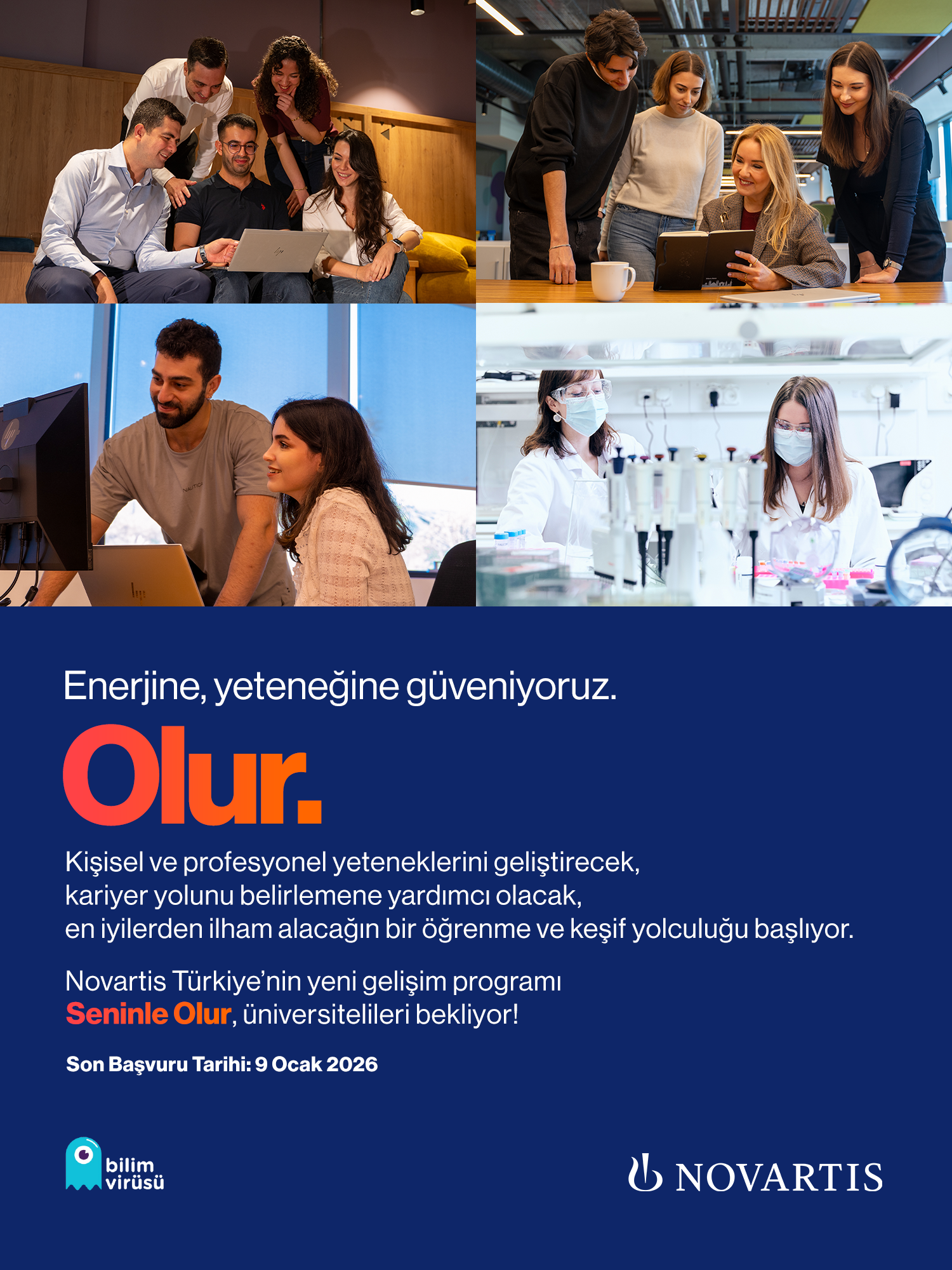 Seninle Olur. Programı, Bilim Virüsü ve Novartis iş birliğiyle, İstanbul ve çevre illerdeki üniversite öğrencilerini kendi gelişim yolculuklarına davet ediyor.