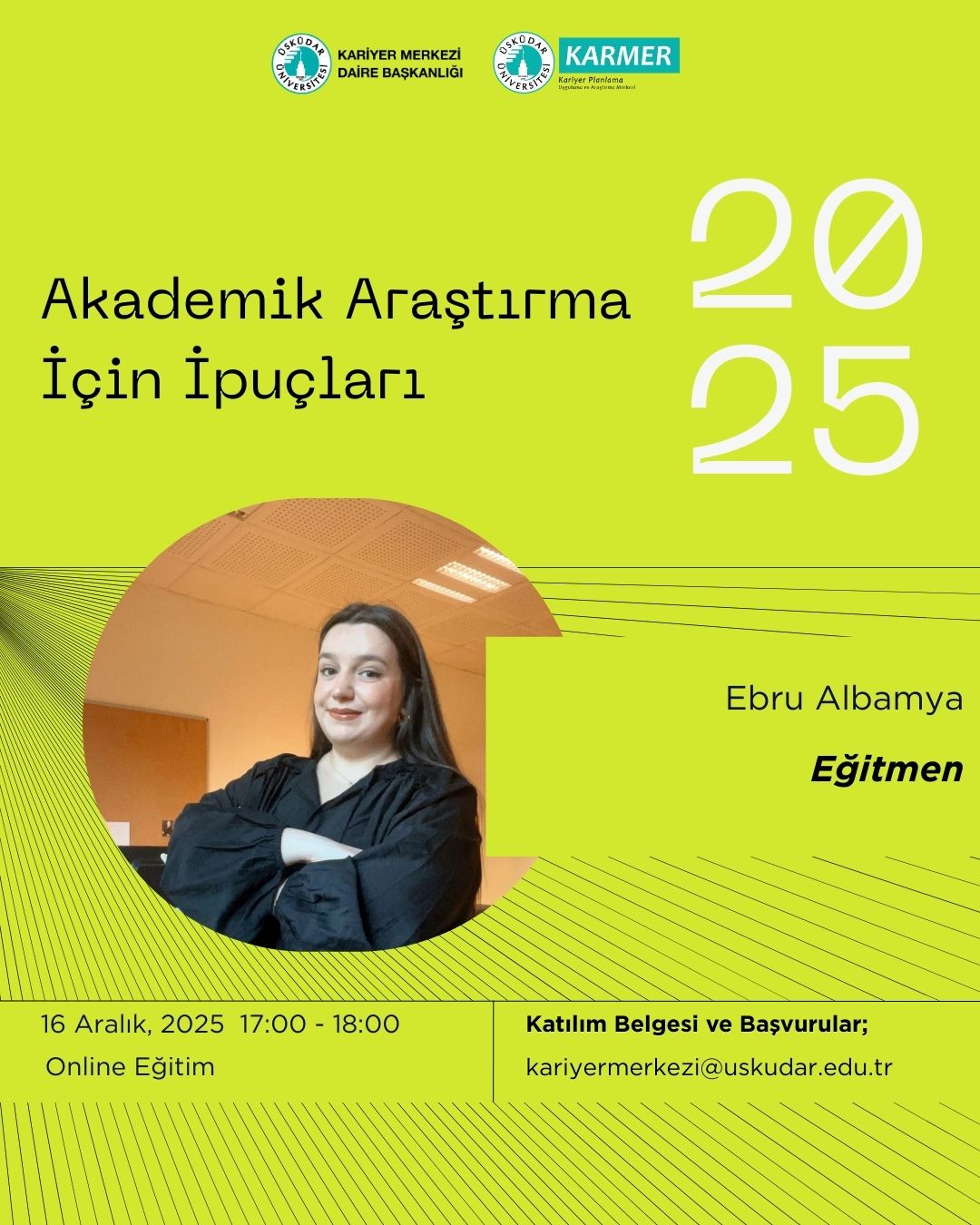 Kariyer Merkezi olarak, siz değerli öğrencilerimiz ve mezunlarımız için “Akademik Araştırma İçin İpuçları” başlıklı bir eğitim düzenliyoruz!