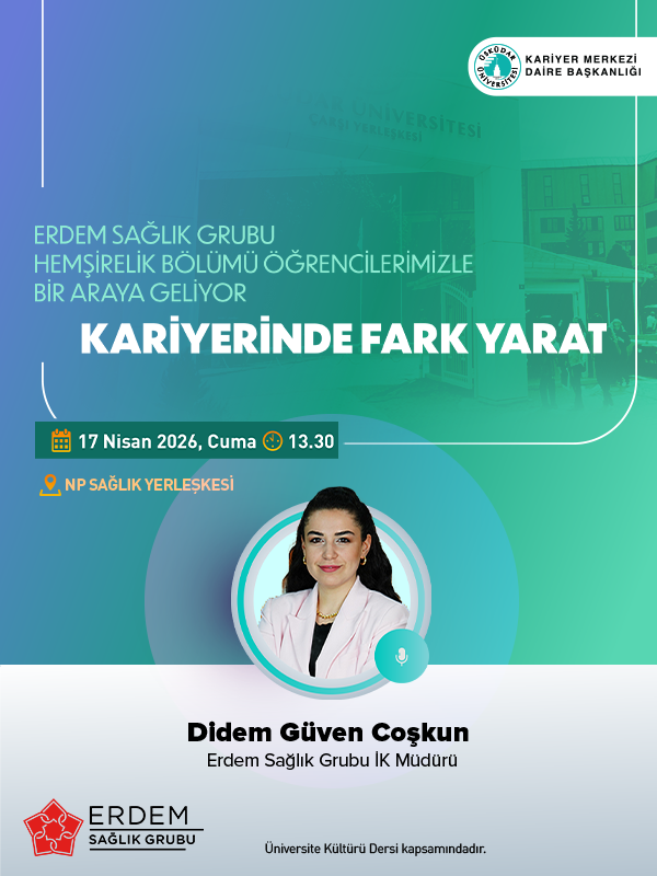 Erdem Sağlık Grubu İK Müdürü Didem Güven Coşkun’un katılımıyla gerçekleşecek etkinlikte; kariyer fırsatları, işe alım süreçleri ve sağlık sektöründe başarıya giden yollar konuşulacak.