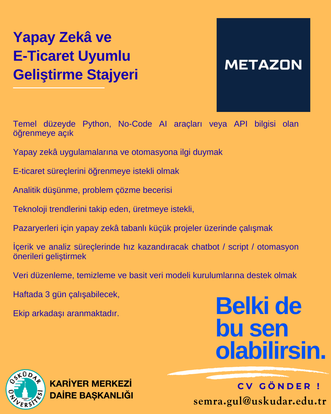 METAZON / Yapay Zekâ ve E-Ticaret Uyumlu Geliştirme Stajyeri